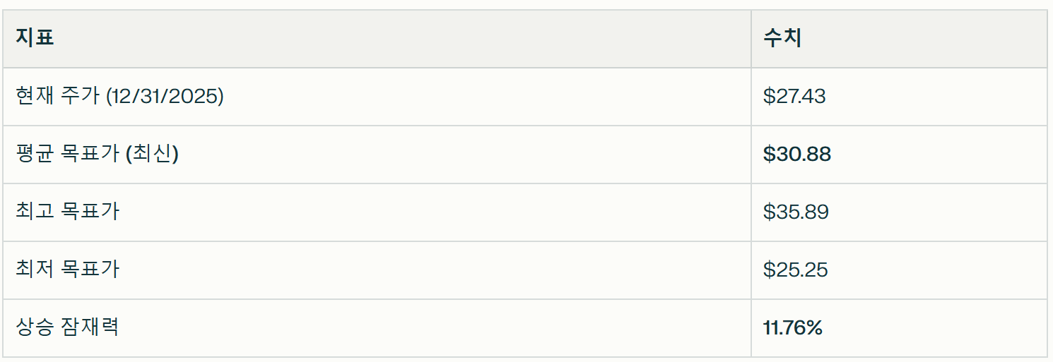 1. 애널리스트 목표가 및 가격 예측