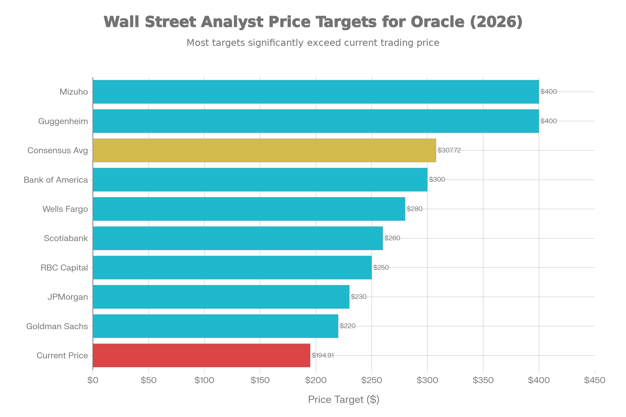 월가의 Oracle에 대한 평가는 매우 분산되어 있습니다. 가장 강세인 미즈호(Mizuho)의 시티 파니그라이(Siti Panigrahi) 애널리스트는 $400의 목표가를 유지하고 있으며, 구겐하임(Guggenheim)의 존 디푸치(John DiFucci) 애널리스트도 동일한 $400 목표가를 제시했습니다. 디푸치는 Oracle을 2026년 최고의 소프트웨어 주식으로 선정하며, 회사의 클라우드 인프라가 경쟁사보다 우수하고 비용 효율적이라고 평가했습니다.
