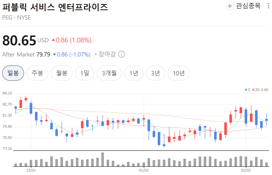 PSEG는 뉴저지 기반의 대형 전력·가스 유틸리티로, 원자력·신재생·천연가스 발전, 송배전망, 에너지 효율화 사업을 영위합니다. 데이터센터, 산업단지 등 대형 수요처에 안정적 전력을 공급하며, 전력망 현대화, 신재생 에너지 확장, 스마트 그리드 구축에 주력합니다. AI 인프라 확장에 따른 전력망 강화의 핵심 기업입니다.